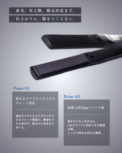 こちらは美容師さんが縮毛矯正の施術に使う用に開発された【縮毛アイロン】でとにかくクセ毛が真っ直ぐになるストレートアイロンです。